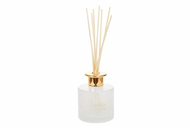 Vaniljan tuoksuinen huonetuoksu. Koko 200ml. Pakkauksessa tuoksuöljy ja tikut. Aseta tikut pulloon ja anna tuoksuöljyn imeytyä tikkuihin. Tikut levittävät miellyttävää tuoksua haluamaasi tilaan kuukausia. Tikkujen määrää lisäämällä voit säädellä tuoksun voimakkuutta. Älä laita kynttilää tai tulta tuoksuöljyn tai tikkujen lähelle. Huolehdi ettei tuotetta pääse iholle, silmiin tai suuhun. Pidä tuote poissa lasten tai lemmikkien lähettyviltä.