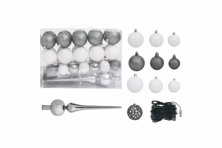Huurteinen Joulukuusi LED-valoilla, Palloilla Ja Kävyillä