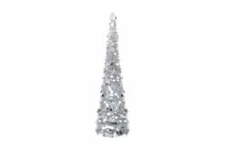 Kiiltävän hopeinen pop-up-tekojoulukuusemme luo mukavan ja ainutlaatuisen tunnelman tulevaan jouluun. Tämä PET-materiaalista valmistettu ihana joulukuusi on kevyt ja taittuu pieneen kokoon helpon säilytyksen takaamiseksi. Tätä joulukoristetta voidaan käyttää uudelleen joka vuosi, joten se on todella taloudellinen vaihtoehto aitoon kuuseen verrattuna. Sitä voidaan käyttää myös sisällä ja ulkona.