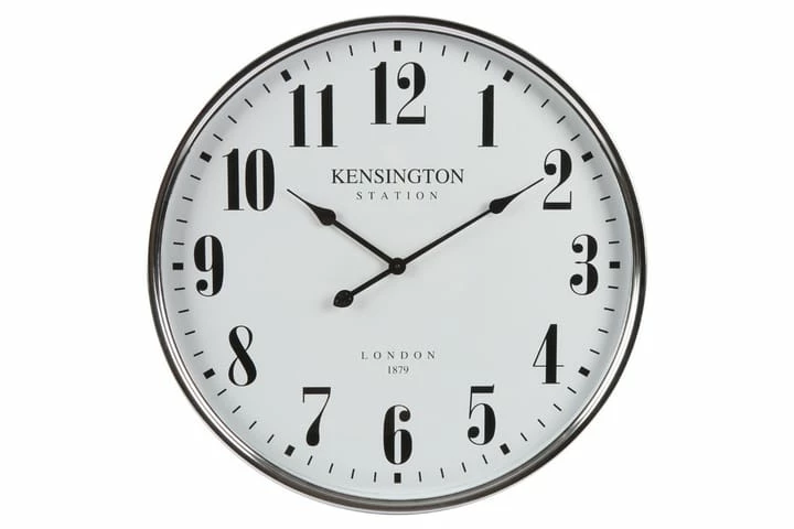 Chic Home Kensington on tyylikäs selkeä seinäkello. Kensington seinäkellon halkaisija on 40 cm. Seinäkellossa on hopeanvärinen metallikehys. Kello toimii yhdellä AA- paristolla.
