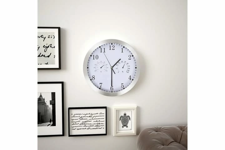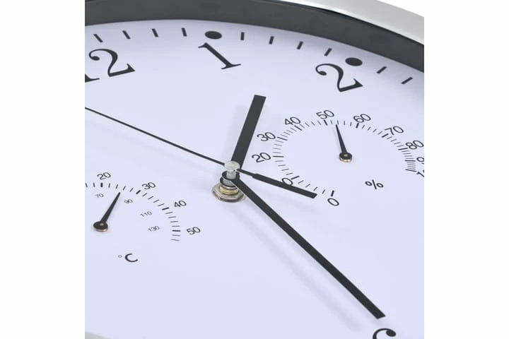Laadukas kvartsikoneistolla varustettu kello on erittäin tarkka pitämään aikaa. Kellossa on kosteusmittari ja lämpömittari, jotka näyttävät huoneen kosteuden ja lämpötilan. Suuren kellotaulun ja selkeiden numeroiden ansiosta kelloa voidaan lukea selkeästi myös pitkän matkan päästä. Se voidaan ripustaa helposti seinälle. Kello on ihanteellinen kotiin, toimistoon, odotushuoneeseen tai vastaanottoalueelle.