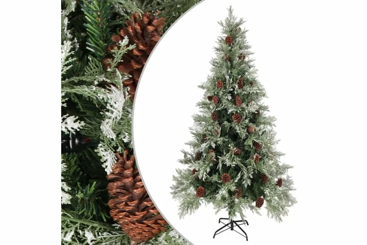 Tekojoulukuusi Kävyillä Vihreä Ja Valkoinen 225 Cm PVC Ja PE
