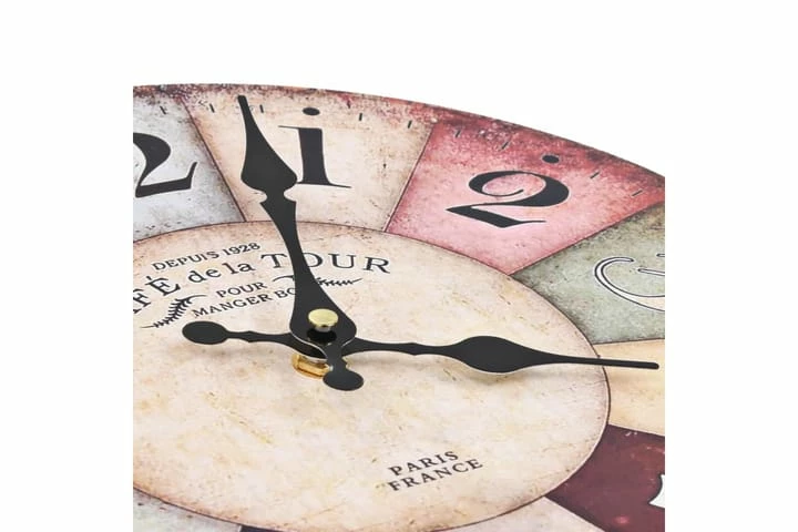 Kellossa on tukeva MDF-runko ja se on erittäin kestävä. Suuren kellotaulun ja selkeiden numeroiden ansiosta kellon näyttämä aika on helppo katsoa kaukaakin. Se voidaan ripustaa helposti seinälle. Kello antaa nostalgisen ulkoasun sisustukseen.