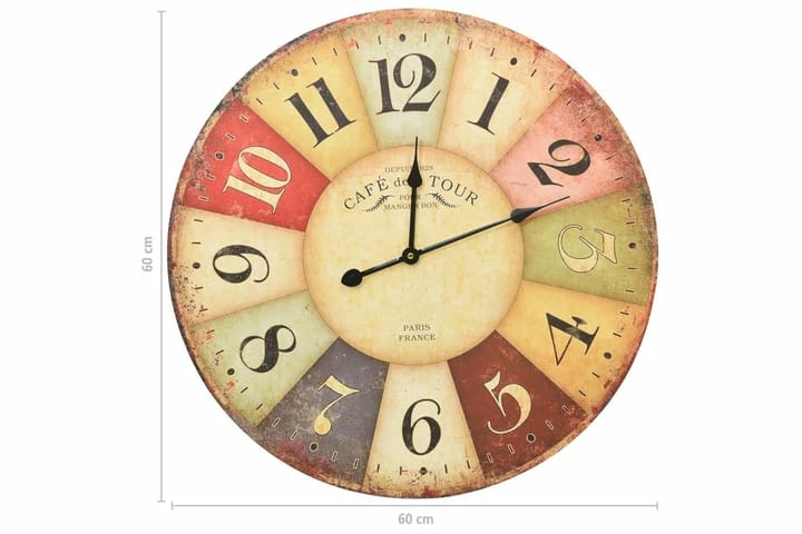 Kellossa on tukeva MDF-runko ja se on erittäin kestävä. Suuren kellotaulun ja selkeiden numeroiden ansiosta kellon näyttämä aika on helppo katsoa kaukaakin. Se voidaan ripustaa helposti seinälle. Kello antaa nostalgisen ulkoasun sisustukseen.